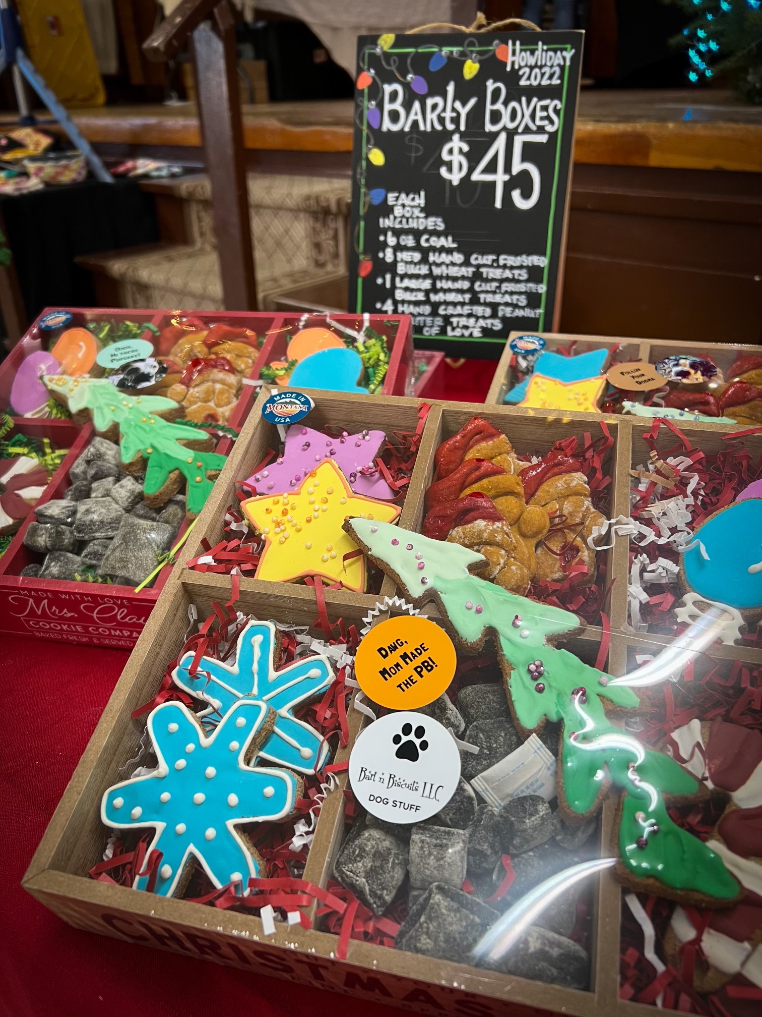 My buckwheat-coconut flour doggie cookies are packed with protein and fiber – and they look good too! Decorated cookies for all occasions with that special message of your choosing. Customize these “dog bones” for Fido’s birthday, GOTCHA day, Adopt-a-versary or just because you LOVE them. Give me a week or so to bake and ship, or pick ’em up if you are local to Missoula. $4 each or 2 for $7 – Or, order a pack of 6 or a dozen or more – they keep great in an open air bowl on the counter – are great cake toppers (oh you need a CAKE too? I can do that!), and they keep perfectly in the freezer. NO added fillers or preservatives – no conga-line of shit in anything I bake, ever! Please indicate color/theme when ordering in the notes section. Thank you!