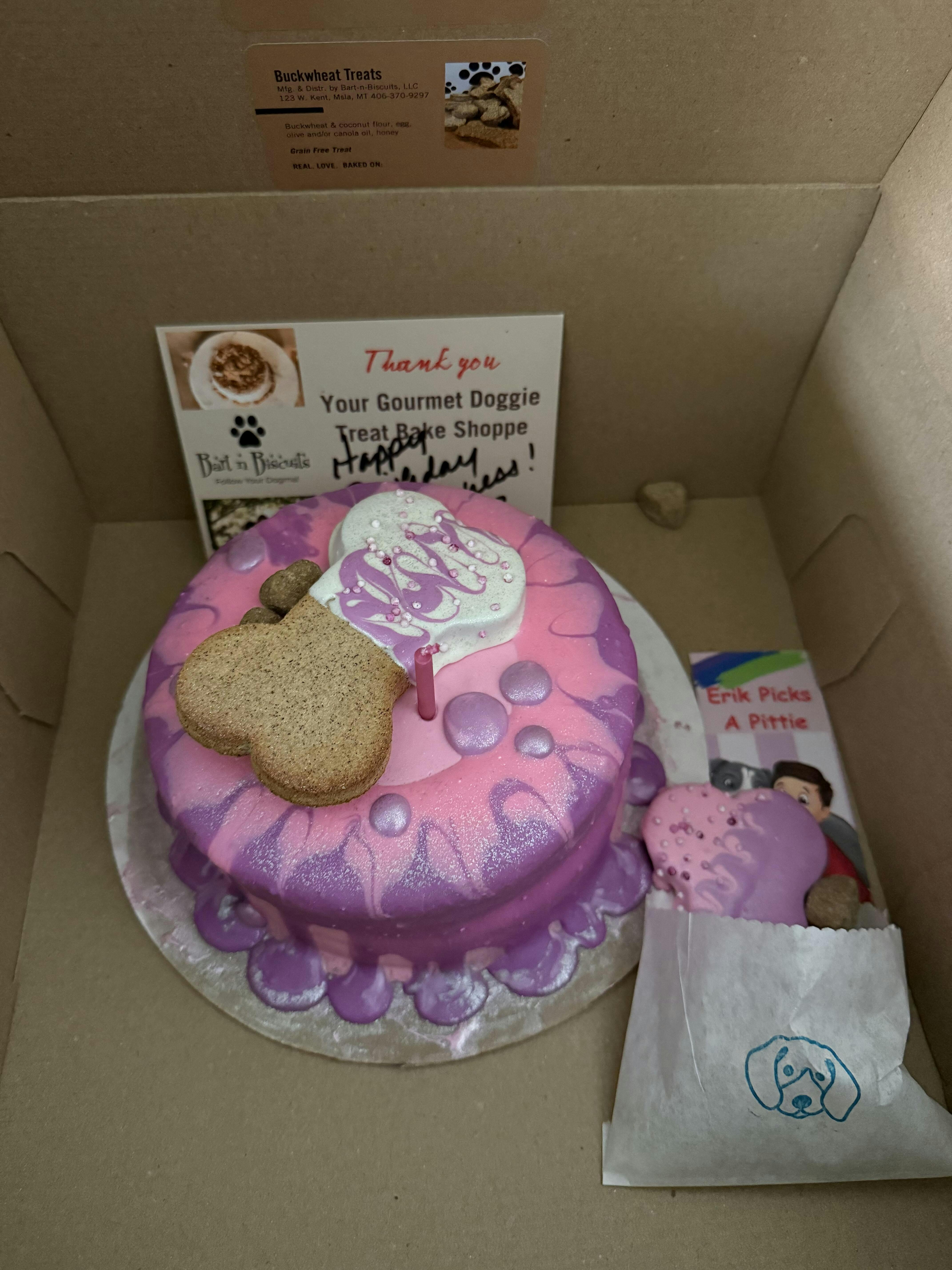 Celebrate your pup's special day with a delicious Pupcake! A four pack of peanut-butter and carrot flavor, FULL size pupcakes frosted with sugar free doggie icing. Decorated to suit! Indicate color(s) or occasion in the notes when you order (birthday, GOTCHA day, Adoptaversary, etc.). Made to order and ships in about 5-7 days.